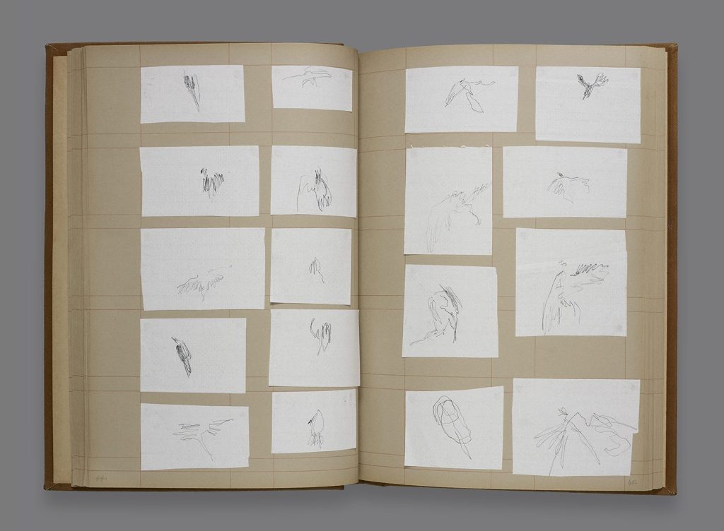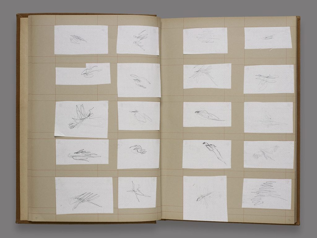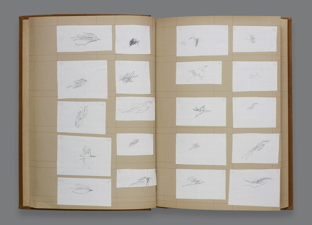An Open Sky, 500 Birds above Lockdown (2020), an album of 506 carbon drawings on rice paper, including 27 large plates. Made for GMCA Covid-19 Creative Commissions, April – May 2020